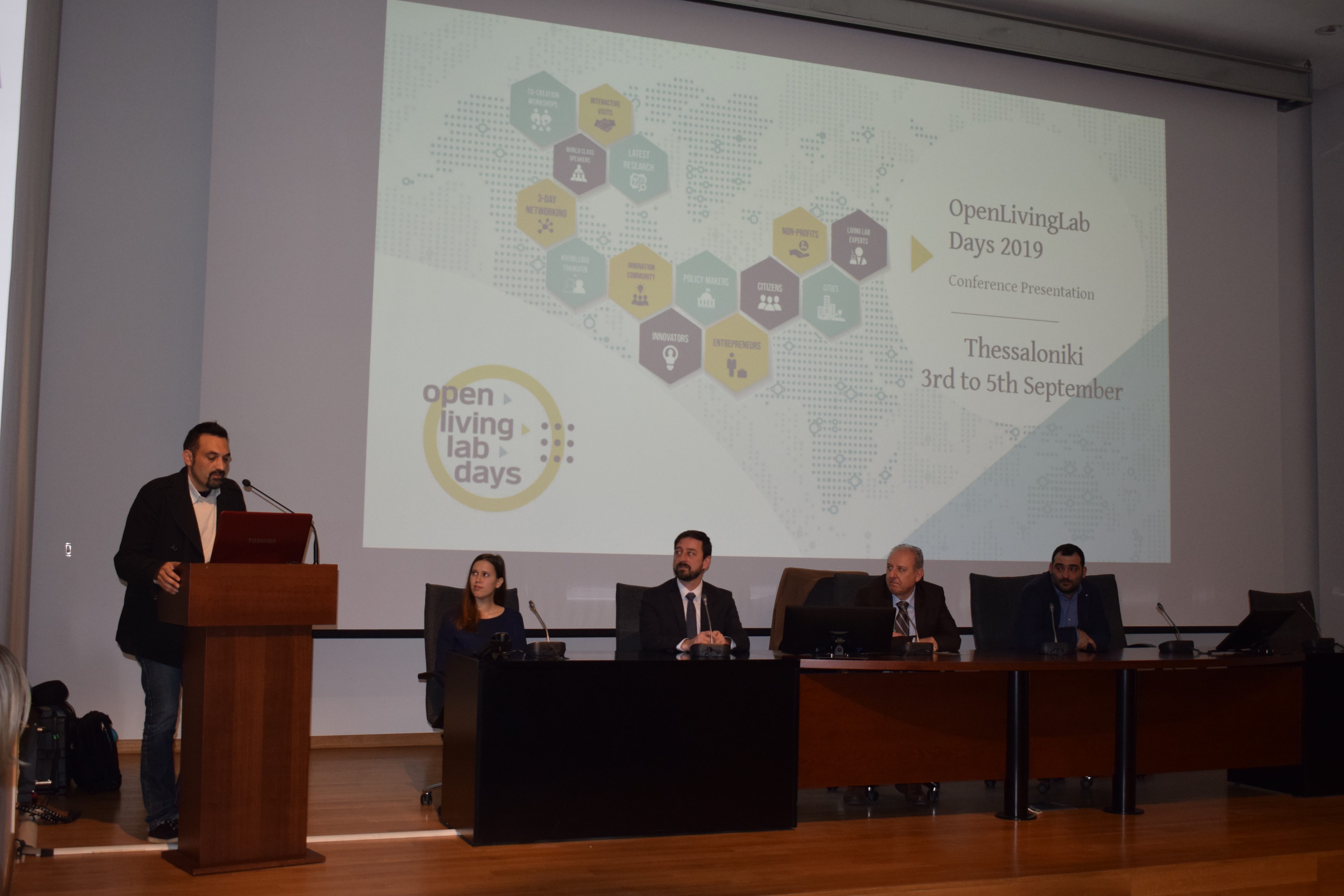On the occasion of the official announcement of the event, last December, and specifically, on Wednesday 12thof December 2018, a representation of the European Network of Living Labs (ENoLL), comprised of Mr. Miguel Galdiz, ENoLL Programme Manager and Mrs. Spela Zalokar, ENoLL Communications Officer & International Project Manager visited Thessaloniki. In the framework of a day-conference, held in the Research Dissemination Center of the Aristotle University of Thessaloniki (AUTH) by the Hellenic Society for Biomedical Technology (ELEVIT) and the AUTH Medical Physics Laboratory, part of which Thess-AHALL is, Mr Galdiz and Mrs Zalokar launched the next OLLDs, presenting the core information about the event, its main actors and a taste of the previous years’ OLLD conferences. They also made an open call to the city of Thessaloniki and all interested actors –from both the public and the private sectors- to join their forces with ENoLL and Thess-AHALL for a successful event. Furthermore, Mr Galdiz and Mrs. Zalokar introduced the next Living Lab Project Award competition and this years’ Business Plan competition, held by ENoLL. Specifically, in the framework of the next OLLDs, this March, a Business Plan Competition will open for ENoLL Members. Finalists will have an opportunity to pitch their business plan/product/service to Venture Capitalists at the Open Living Lab Days 2019 next September in Thessaloniki and receive feedback on the readiness of their product/service/business model.